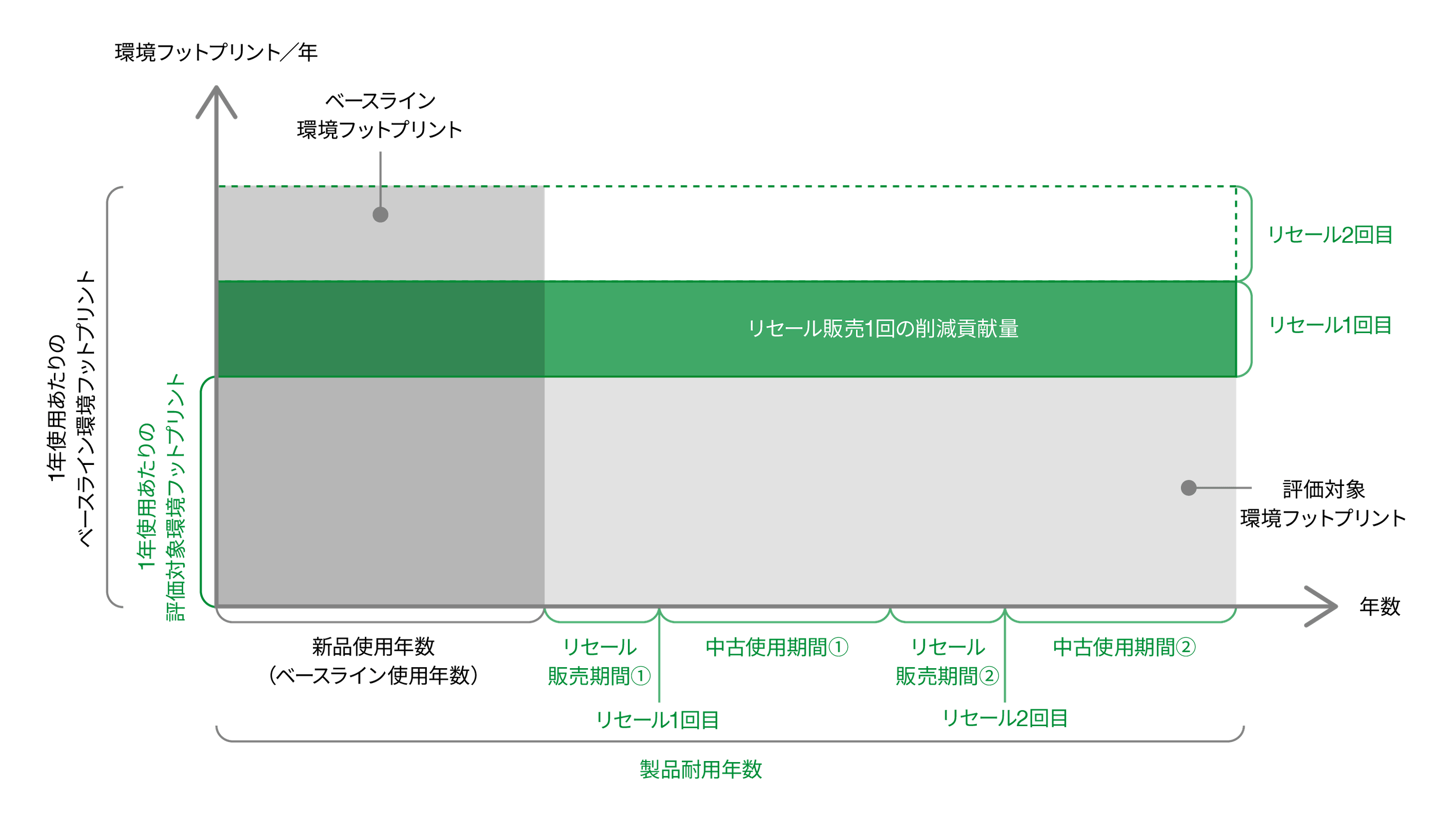 リセール回数は、製品の耐用年数および平均販売期間を考慮したシナリオ設定に基づき算出しています。